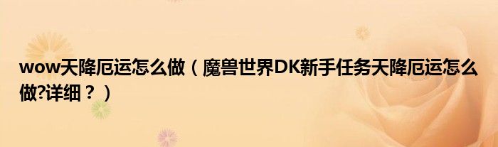 大家好,小安來為大家解答以上問題。wow天降厄運怎么做,魔獸世界DK新手任務天降厄運怎么做?詳細?很多人還不知道,現在讓我們一起來看看吧!