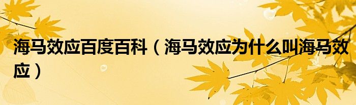 大家好,小安來(lái)為大家解答以上問(wèn)題。海馬效應(yīng)百度百科,海馬效應(yīng)為什么叫海馬效應(yīng)很多人還不知道,現(xiàn)在讓我們一起來(lái)看看吧!