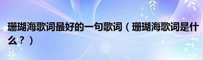 大家好,小安來為大家解答以上問題。珊瑚海歌詞最好的一句歌詞,珊瑚海歌詞是什么?很多人還不知道,現(xiàn)在讓我們一起來看看吧!