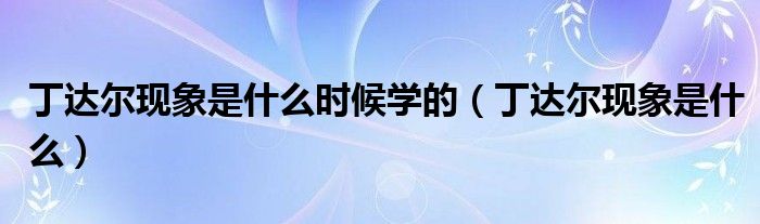 大家好,小安來為大家解答以上問題。丁達爾現象是什么時候學的,丁達爾現象是什么很多人還不知道,現在讓我們一起來看看吧!