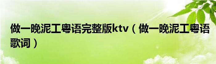 大家好,小安來為大家解答以上問題。做一晚泥工粵語(yǔ)完整版ktv,做一晚泥工粵語(yǔ)歌詞很多人還不知道,現(xiàn)在讓我們一起來看看吧!
