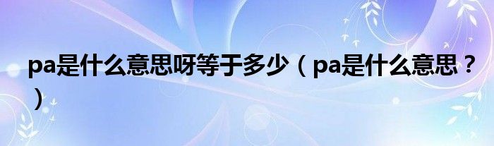 大家好,小安來為大家解答以上問題。pa是什么意思呀等于多少,pa是什么意思?很多人還不知道,現在讓我們一起來看看吧!