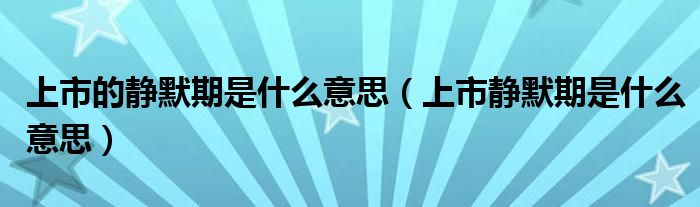 大家好,小安來為大家解答以上問題。上市的靜默期是什么意思,上市靜默期是什么意思很多人還不知道,現在讓我們一起來看看吧!