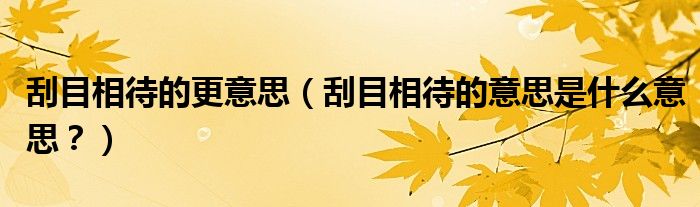 大家好,小安來為大家解答以上問題。刮目相待的更意思,刮目相待的意思是什么意思?很多人還不知道,現在讓我們一起來看看吧!