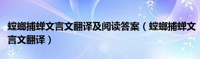 大家好,小安來為大家解答以上問題。螳螂捕蟬文言文翻譯及閱讀答案,螳螂捕蟬文言文翻譯很多人還不知道,現在讓我們一起來看看吧!