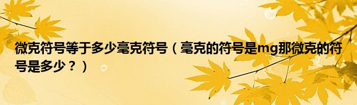 大家好,小安來為大家解答以上問題。微克符號(hào)等于多少毫克符號(hào),毫克的符號(hào)是mg那微克的符號(hào)是多少?很多人還不知道,現(xiàn)在讓我們一起來看看吧!