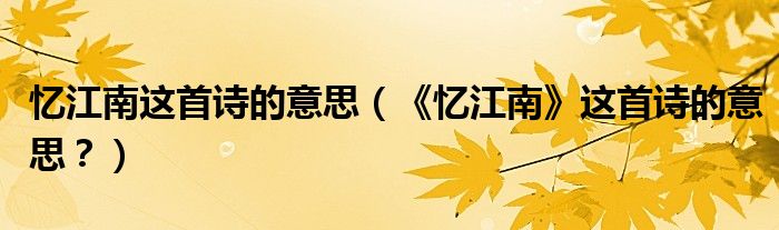 大家好,小安來為大家解答以上問題。憶江南這首詩的意思,《憶江南》這首詩的意思?很多人還不知道,現在讓我們一起來看看吧!