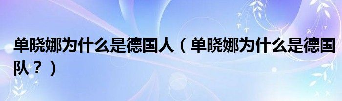 大家好,小安來為大家解答以上問題。單曉娜為什么是德國人,單曉娜為什么是德國隊?很多人還不知道,現在讓我們一起來看看吧!