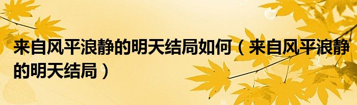 大家好,小安來(lái)為大家解答以上問(wèn)題。來(lái)自風(fēng)平浪靜的明天結(jié)局如何,來(lái)自風(fēng)平浪靜的明天結(jié)局很多人還不知道,現(xiàn)在讓我們一起來(lái)看看吧!