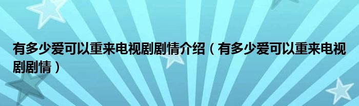 大家好,小安來(lái)為大家解答以上問(wèn)題。有多少愛(ài)可以重來(lái)電視劇劇情介紹,有多少愛(ài)可以重來(lái)電視劇劇情很多人還不知道,現(xiàn)在讓我們一起來(lái)看看吧!
