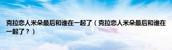 大家好,小安來為大家解答以上問題。克拉戀人米朵最后和誰在一起了,克拉戀人米朵最后和誰在一起了?很多人還不知道,現在讓我們一起來看看吧!