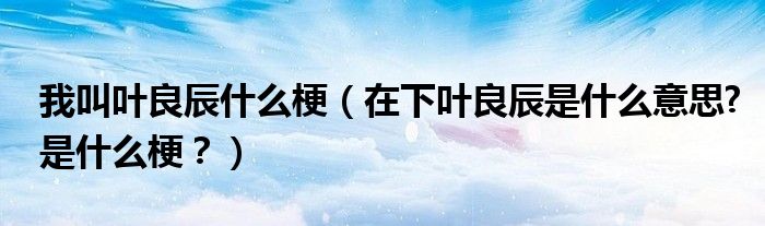 大家好,小安來為大家解答以上問題。我叫葉良辰什么梗,在下葉良辰是什么意思?是什么梗?很多人還不知道,現(xiàn)在讓我們一起來看看吧!