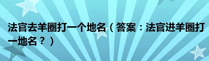 大家好,小安來為大家解答以上問題。法官去羊圈打一個地名,答案:法官進羊圈打一地名?很多人還不知道,現在讓我們一起來看看吧!