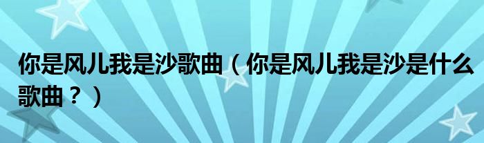 大家好,小安來(lái)為大家解答以上問題。你是風(fēng)兒我是沙歌曲,你是風(fēng)兒我是沙是什么歌曲?很多人還不知道,現(xiàn)在讓我們一起來(lái)看看吧!