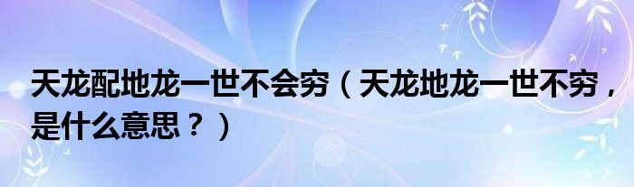 大家好,小安來為大家解答以上問題。天龍配地龍一世不會窮,天龍地龍一世不窮 ,是什么意思?很多人還不知道,現在讓我們一起來看看吧!