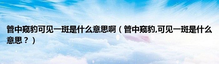 大家好,小安來為大家解答以上問題。管中窺豹可見一斑是什么意思啊,管中窺豹,可見一斑是什么意思?很多人還不知道,現在讓我們一起來看看吧!