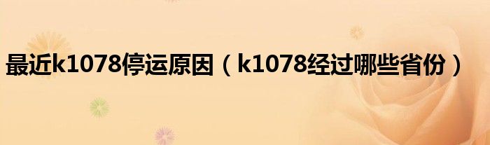 大家好,小安來為大家解答以上問題。最近k1078停運原因,k1078經過哪些省份很多人還不知道,現在讓我們一起來看看吧!