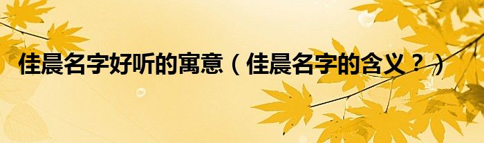 大家好,小安來為大家解答以上問題。佳晨名字好聽的寓意,佳晨名字的含義?很多人還不知道,現在讓我們一起來看看吧!