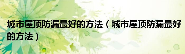 大家好,小安來為大家解答以上問題。城市屋頂防漏最好的方法,城市屋頂防漏最好的方法很多人還不知道,現在讓我們一起來看看吧!