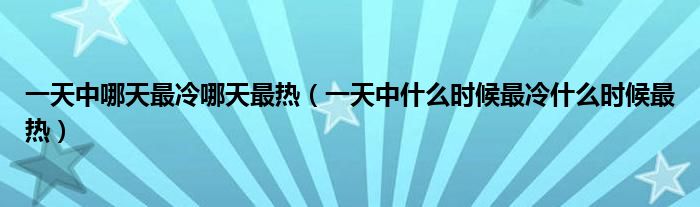 大家好,小安來為大家解答以上問題。一天中哪天最冷哪天最熱,一天中什么時候最冷什么時候最熱很多人還不知道,現在讓我們一起來看看吧!