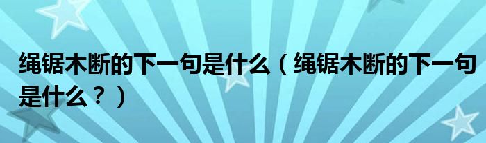 大家好,小安來為大家解答以上問題。繩鋸木斷的下一句是什么,繩鋸木斷的下一句是什么?很多人還不知道,現在讓我們一起來看看吧!