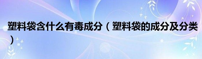 大家好,小安來為大家解答以上問題。塑料袋含什么有毒成分,塑料袋的成分及分類很多人還不知道,現在讓我們一起來看看吧!