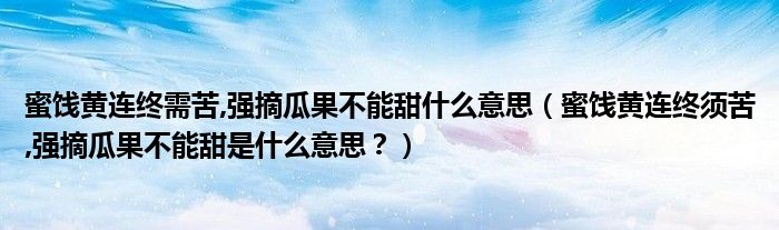 大家好,小安來(lái)為大家解答以上問(wèn)題。蜜餞黃連終需苦,強(qiáng)摘瓜果不能甜什么意思,蜜餞黃連終須苦,強(qiáng)摘瓜果不能甜是什么意思?很多人還不知道,現(xiàn)在讓我們一起來(lái)看看吧!