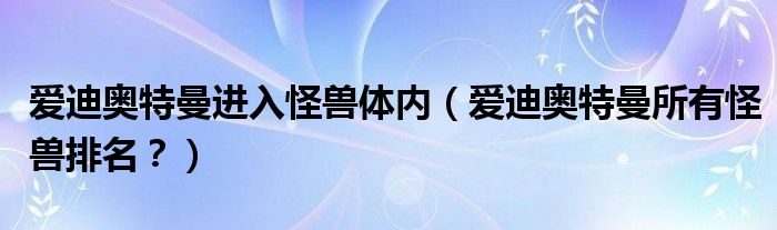 大家好,小安來為大家解答以上問題。愛迪奧特曼進入怪獸體內(nèi),愛迪奧特曼所有怪獸排名?很多人還不知道,現(xiàn)在讓我們一起來看看吧!