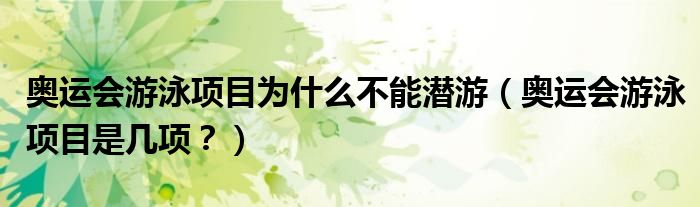 大家好,小安來為大家解答以上問題。奧運會游泳項目為什么不能潛游,奧運會游泳項目是幾項?很多人還不知道,現在讓我們一起來看看吧!