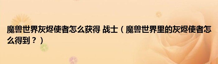 大家好,小安來為大家解答以上問題。魔獸世界灰燼使者怎么獲得 戰士,魔獸世界里的灰燼使者怎么得到?很多人還不知道,現在讓我們一起來看看吧!