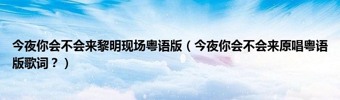 大家好,小安來為大家解答以上問題。今夜你會不會來黎明現(xiàn)場粵語版,今夜你會不會來原唱粵語版歌詞?很多人還不知道,現(xiàn)在讓我們一起來看看吧!