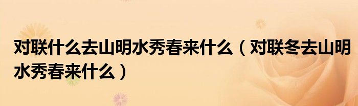 大家好,小安來為大家解答以上問題。對聯什么去山明水秀春來什么,對聯冬去山明水秀春來什么很多人還不知道,現在讓我們一起來看看吧!