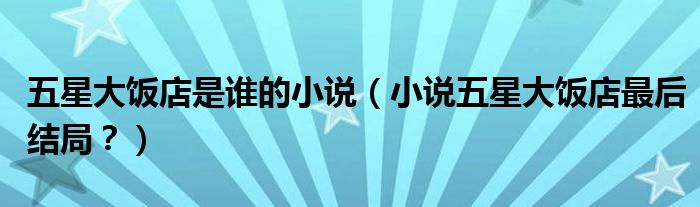 大家好,小安來為大家解答以上問題。五星大飯店是誰的小說,小說五星大飯店最后結局?很多人還不知道,現在讓我們一起來看看吧!