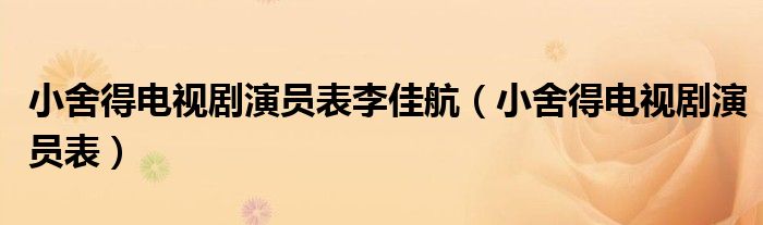大家好,小安來(lái)為大家解答以上問(wèn)題。小舍得電視劇演員表李佳航,小舍得電視劇演員表很多人還不知道,現(xiàn)在讓我們一起來(lái)看看吧!