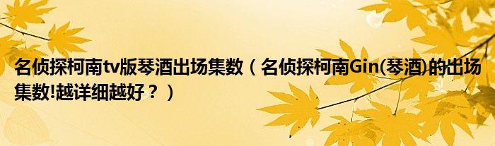 大家好,小安來為大家解答以上問題。名偵探柯南tv版琴酒出場集數,名偵探柯南Gin(琴酒)的出場集數!越詳細越好?很多人還不知道,現在讓我們一起來看看吧!