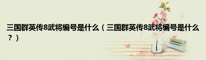 大家好,小安來為大家解答以上問題。三國群英傳8武將編號是什么,三國群英傳8武將編號是什么?很多人還不知道,現(xiàn)在讓我們一起來看看吧!