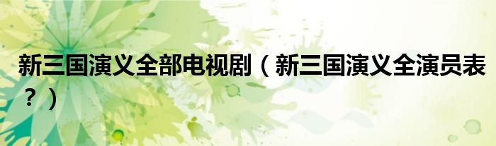 大家好,小安來為大家解答以上問題。新三國演義全部電視劇,新三國演義全演員表?很多人還不知道,現在讓我們一起來看看吧!