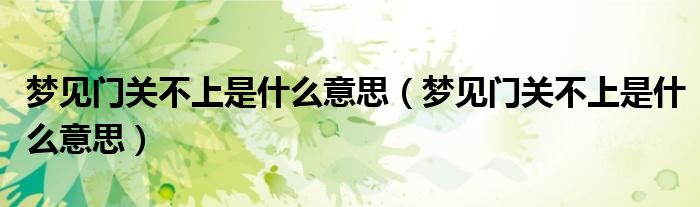 大家好,小安來為大家解答以上問題。夢(mèng)見門關(guān)不上是什么意思,夢(mèng)見門關(guān)不上是什么意思很多人還不知道,現(xiàn)在讓我們一起來看看吧!