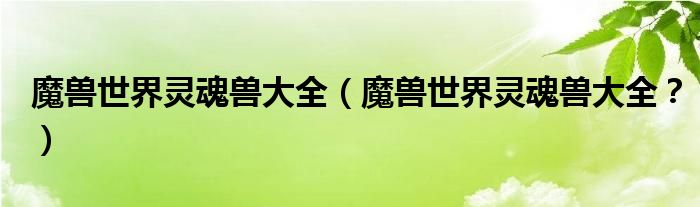 大家好,小安來為大家解答以上問題。魔獸世界靈魂獸大全,魔獸世界靈魂獸大全?很多人還不知道,現在讓我們一起來看看吧!