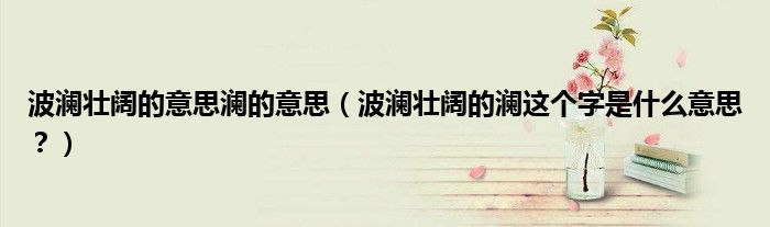 1、 波瀾壯闊(bln Zhungku)解釋:蘭:大浪;壯麗:壯麗而寬廣。