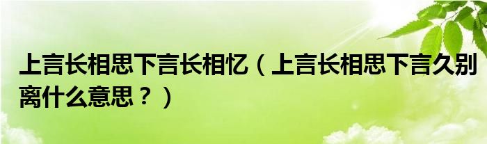 大家好,小安來為大家解答以上問題。上言長相思下言長相憶,上言長相思下言久別離什么意思?很多人還不知道,現在讓我們一起來看看吧!