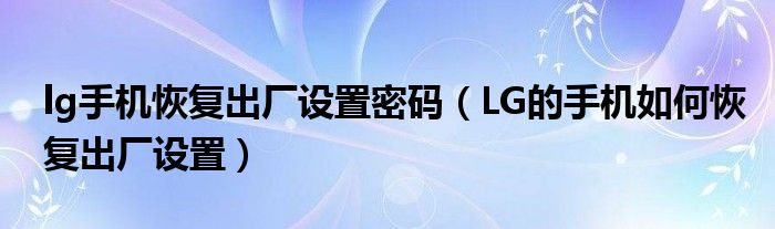 大家好,小安來為大家解答以上問題。lg手機恢復出廠設置密碼,LG的手機如何恢復出廠設置很多人還不知道,現在讓我們一起來看看吧!
