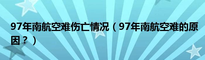 大家好,小安來為大家解答以上問題。97年南航空難傷亡情況,97年南航空難的原因?很多人還不知道,現(xiàn)在讓我們一起來看看吧!