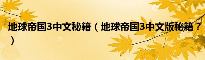 大家好,小安來為大家解答以上問題。地球帝國3中文秘籍,地球帝國3中文版秘籍?很多人還不知道,現在讓我們一起來看看吧!
