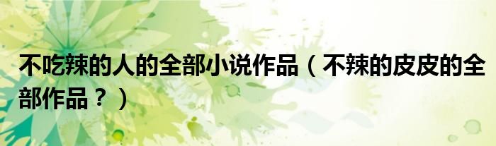 大家好,小安來為大家解答以上問題。不吃辣的人的全部小說作品,不辣的皮皮的全部作品?很多人還不知道,現(xiàn)在讓我們一起來看看吧!