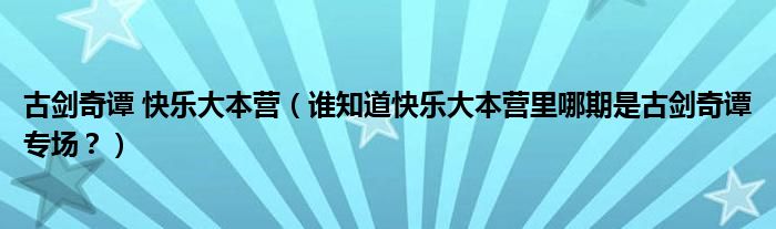 大家好,小安來為大家解答以上問題。古劍奇譚 快樂大本營,誰知道快樂大本營里哪期是古劍奇譚專場?很多人還不知道,現在讓我們一起來看看吧!