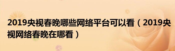 大家好,小安來(lái)為大家解答以上問(wèn)題。2019央視春晚哪些網(wǎng)絡(luò)平臺(tái)可以看,2019央視網(wǎng)絡(luò)春晚在哪看很多人還不知道,現(xiàn)在讓我們一起來(lái)看看吧!