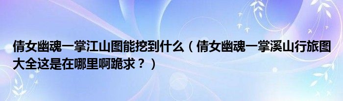 大家好,小安來為大家解答以上問題。倩女幽魂一掌江山圖能挖到什么,倩女幽魂一掌溪山行旅圖大全這是在哪里啊跪求?很多人還不知道,現在讓我們一起來看看吧!