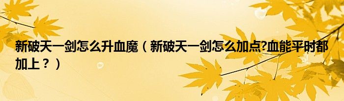 大家好,小安來(lái)為大家解答以上問(wèn)題。新破天一劍怎么升血魔,新破天一劍怎么加點(diǎn)?血能平時(shí)都加上?很多人還不知道,現(xiàn)在讓我們一起來(lái)看看吧!