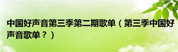 大家好,小安來為大家解答以上問題。中國(guó)好聲音第三季第二期歌單,第三季中國(guó)好聲音歌單?很多人還不知道,現(xiàn)在讓我們一起來看看吧!